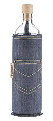 Cover in neoprene rivestita in jeans che protegge Flaska dagli urti e aiuta a mantenere l'acqua fresca.