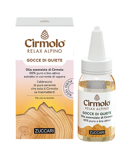 Le Gocce di Quiete racchiudono l’aroma caldo e rassicurante del Cirmolo, distillato in corrente di vapore per preservarne le sue proprietà aromatiche più preziose.