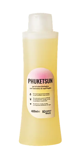 La presenza di estratto di Caprifoglio dalle proprietĆ rinfrescanti, antinfiammatorie e antipiretiche rende Phuketsun perfetto in caso di scottature o eritema solare.