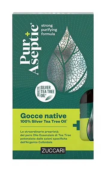 Unisce le straordinarie proprietà del puro Olio Essenziale di Tea Tree potenziate dalle azioni specifiche dell’Argento Colloidale.