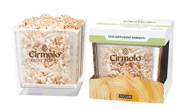 Il Cirmolo porta negli ambienti l’atmosfera autentica delle Alpi: un profumo che distende, accoglie e restituisce armonia alla casa.
