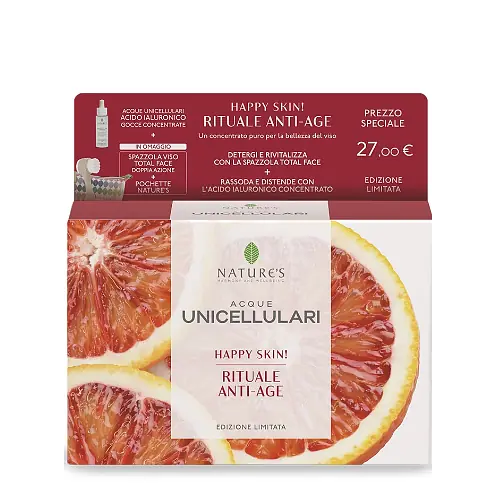 L'acido ialuronico a tre pesi molecolariĀ ĆØ abbinato al biofermentato di agrumi bioĀ ricco di vitamine e oligoelementi essenziali per un'azione antiossidante e anti-age.
